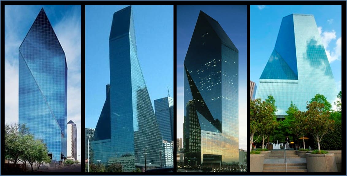 The Fountain Place is an iconic structure in the Dallas skyline.  The building was completed in 1986 and includes 1,200,000 square feet that covers 62 floors and spans 720 feet tall.