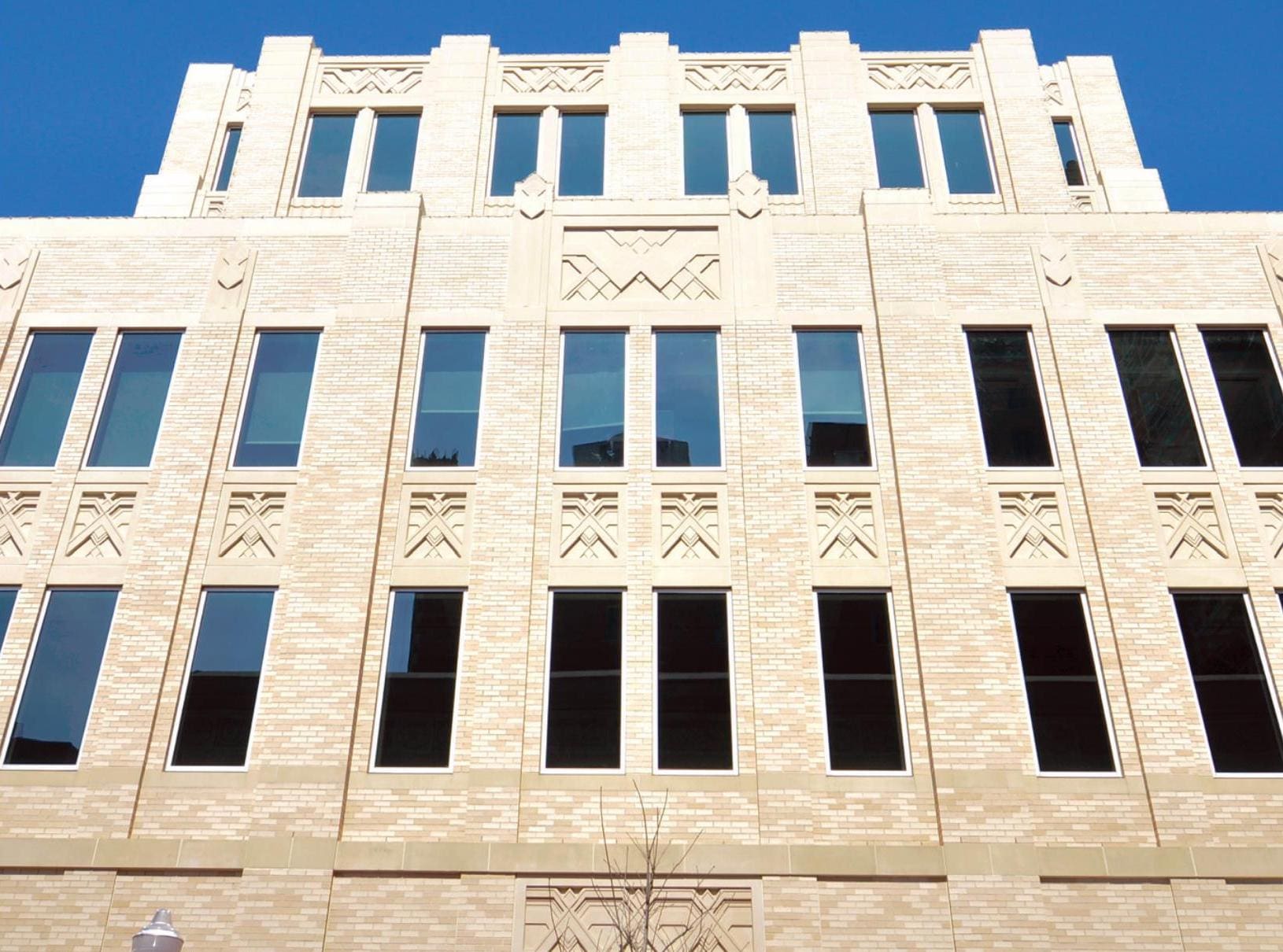 Two historic buildings on the site, the Chisholm Trail Mural Building and the Land Title Building, were preserved and incorporated into the site.