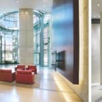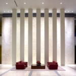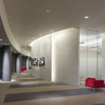 Many unique clouds and custom ceilings make this project stand out, as well as the cylindrical tower-skylight at the main entrance to the complex.