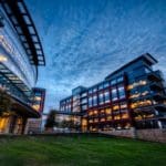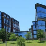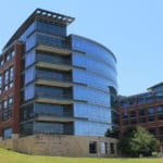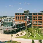 The RadioShack Corporate Headquarters is a campus-style facility located along the Trinity River in Downtown Fort Worth. The facility features three buildings and a commons building for a total of 900,000 square feet, fanned out to accentuate the curve of the river.